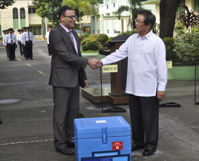 Earlier this week WHO presented the Philippine Department of Health with equipment and supplies that will contribute to the nationwide effort to protect children against measles, rubella and polio. All three diseases can cause suffering and death but are preventable if children are correctly vaccinated. During the whole month of September 2014 there will be a nationwide mass immunization activity against measles, rubella and polio. The aim of this campaign is to bring measles in the country down to very low levels and move towards measles elimination throughout the Philippines, reduce rubella rates and support efforts to keep the Philippines polio-free.
